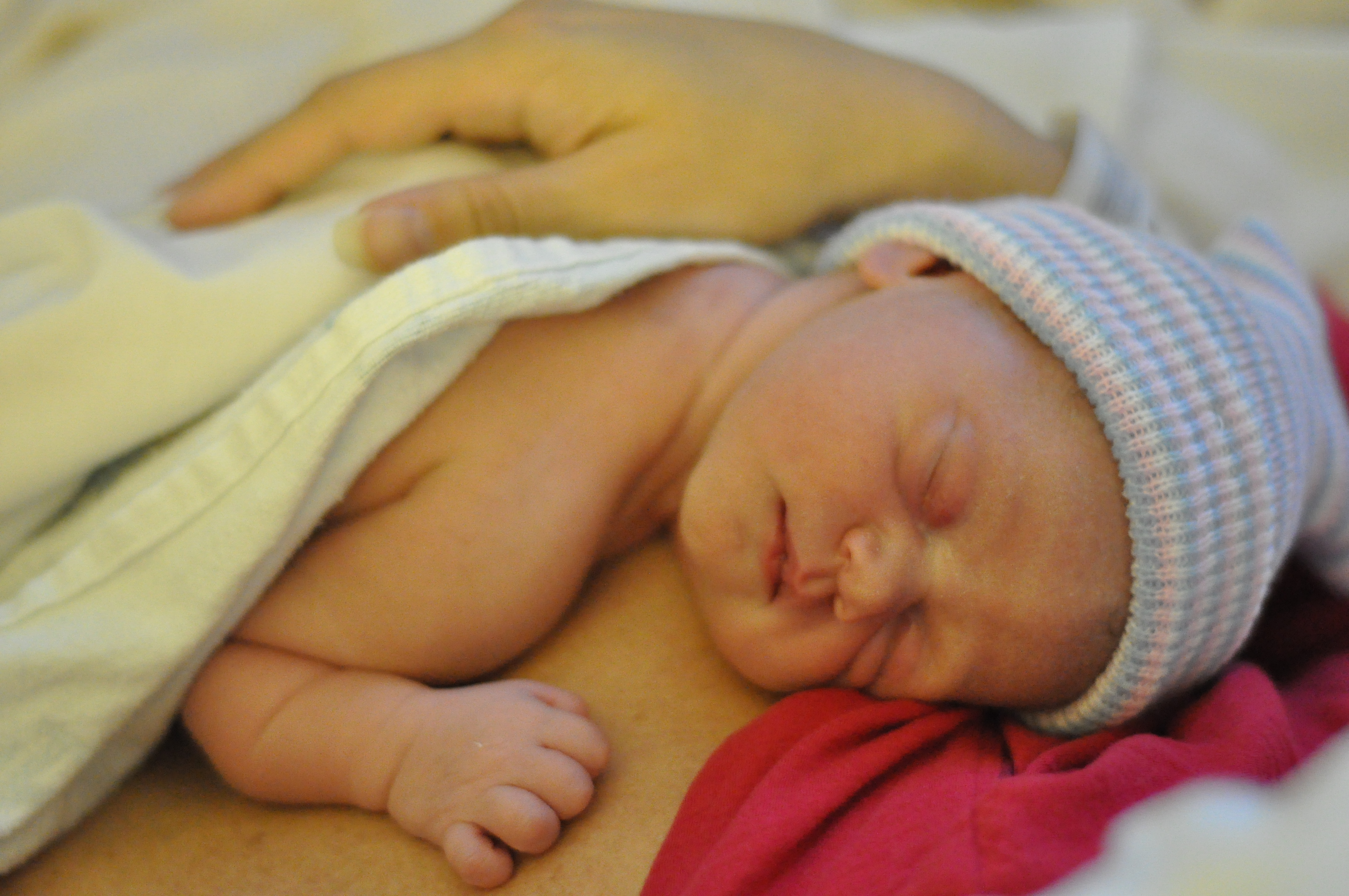 This picture was taken just minutes after birth… Don’t worry, many more to come – we just haven’t gotten settled yet (read: little/no sleep yet), but we’ve had many requests for photos. Hospital time is timeless, really, with people in/out of our room every 15 minutes or so all night long, and getting OUT of the hospital today was quite the undertaking. But we just got home. Whew.