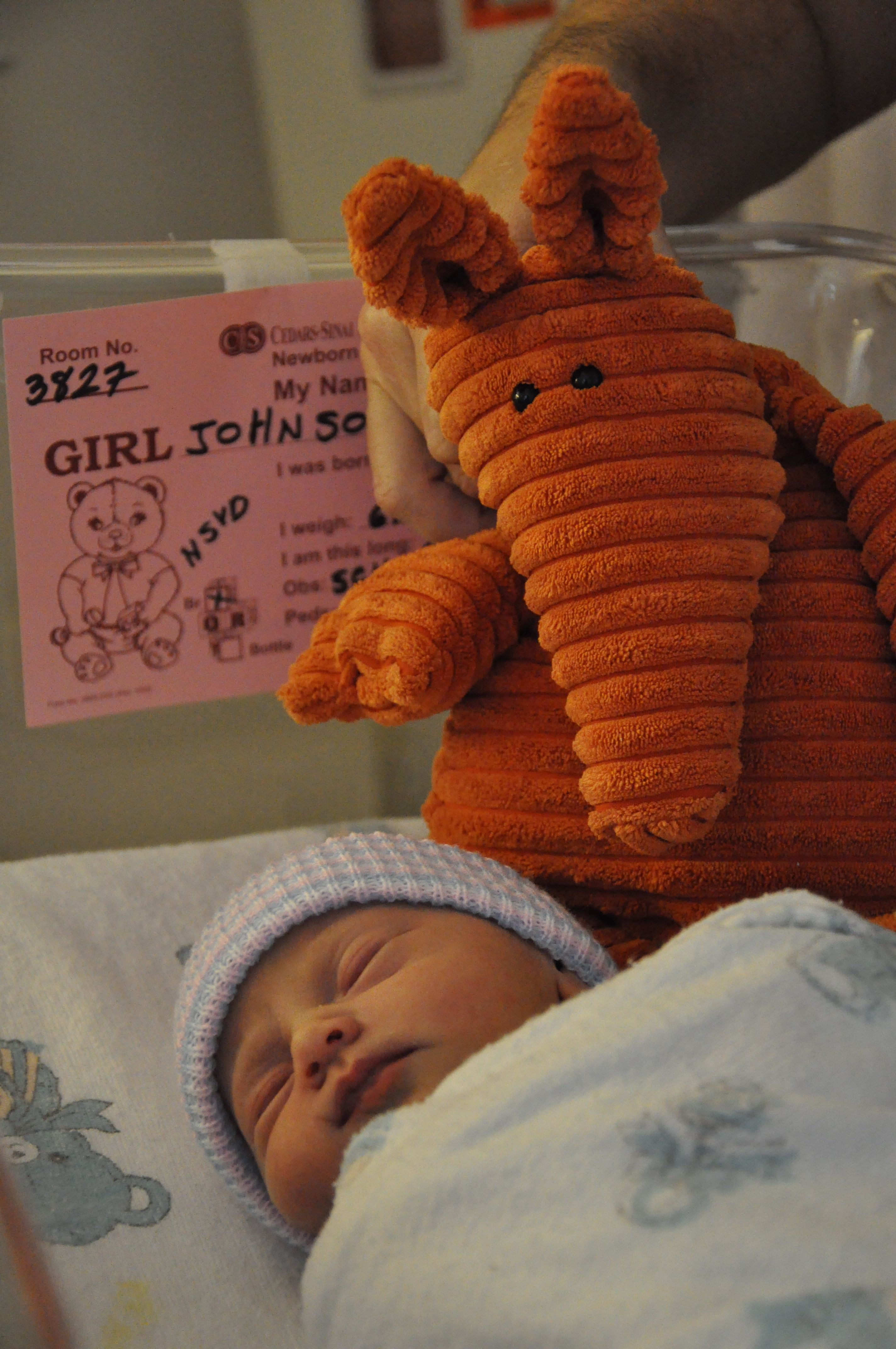 Hope to get some rest while this beautiful little girl is resting :) A couple more pictures below for your enjoyment from the car ride home and the hospital room. Oh, and by the way, we had nothing to do with the hat (Cedars-Sinai nursery gift), but I think it’s hilarious. ENJOY!