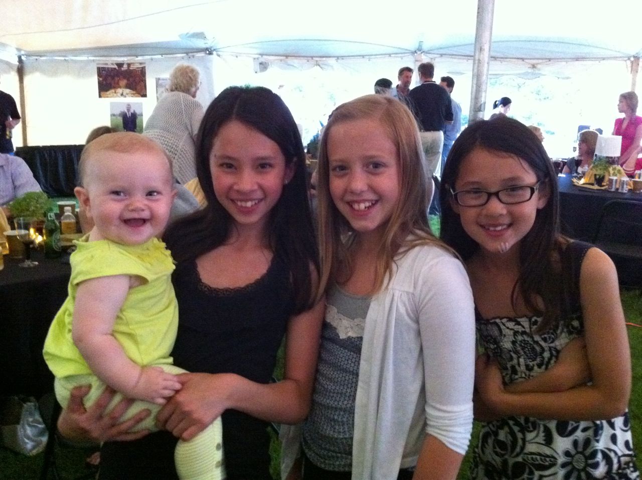 Honestly, it was fabulous to watch Zoe meet her extended Johnson family for the first time. She was passed around from loving arms to loving arms all evening long – some of those arms belonged to cute little girl cousins who were thrilled to “hold the baby” (see below). And some of those tiny cousins couldn’t have outweighed Zoe by more than 10 pounds, wet, but Zoe loves loves loves little girls. She was a GREAT sport, and for HOURS.