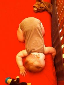 (yes, her hand is stuck down beside the mattress and no, we did not wake her to fix it)