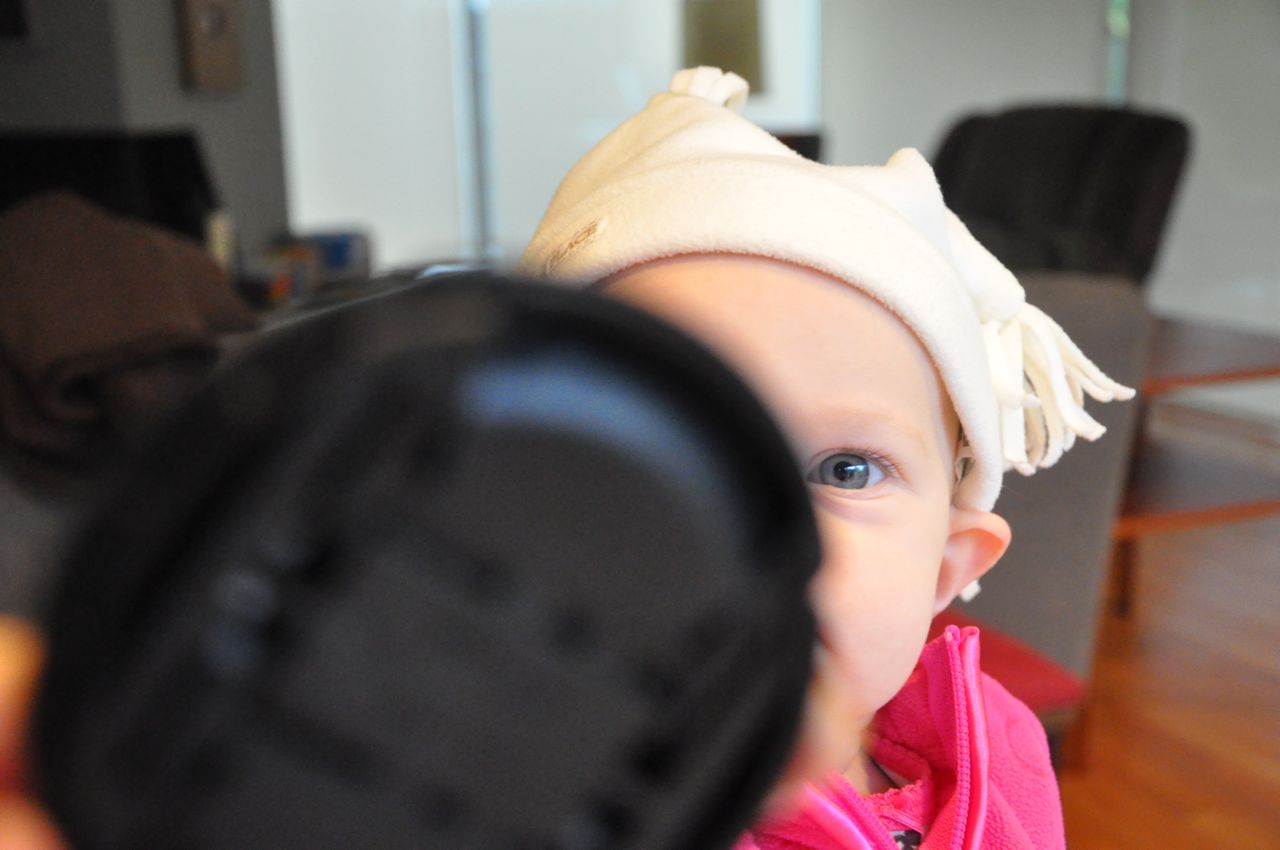 Unfortunately, I think she’s finally caught on that the camera is actually a barrier between her and mamamamamamama – not a fun peekaboo game to make her giggle. And yes, she does like looking at pictures of herself, so this could continue for a while – as long as I keep the lens cap out of sight, out of mind.