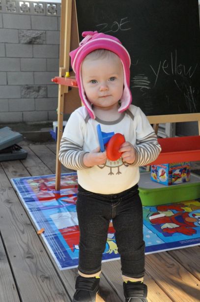 Zoe’s entry to this new year, weather aside, has been a little rocky. Just 2 days after the ER episode we ended up at my sister’s pediatrician to check out some ear tugging and a fever, which turned out to be the beginning of her first ever ear infection. So this is day 6 of twice-a-day sickeningly sweet (no, I didn’t taste it) pink antibiotics and ibuprofen. Yes, I’m aware how ironic that is after my medicine-hating post. Oh, and just before heading to the pediatrician, we noticed she had snuck in TWO new bottom teeth – her First Molars! Which could also explain some of the poor sleep.