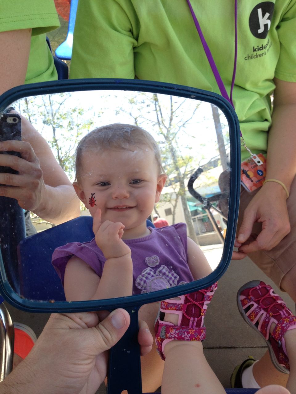 Of course, there are benefits to this “smarter” kid. She sat perfectly still to get her face painted today at the KidSpace Museum (here’s the VIDEO to prove it) – so still that the face painters who had been swamped with little kids all day were amazed at her age. That’s good, right? Guess you gotta take the good with the less good. And maybe this confident little smart girl will end up running the world! She sure tried to “run” the face painters when they finished with the ladybug and she instantly pointed to the other side for them to do it again ;)