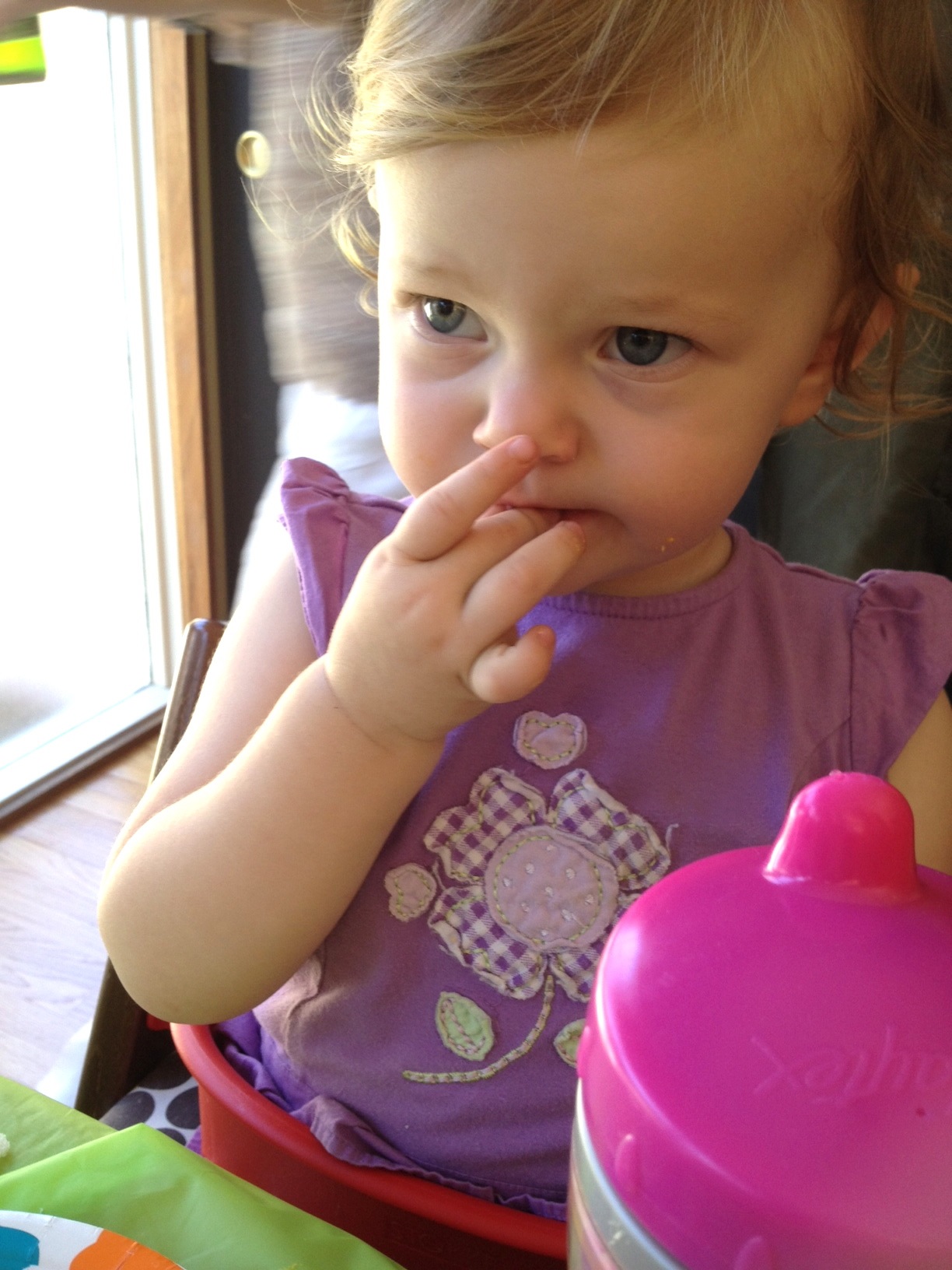 And now we have a 2 year old – who starts SCHOOL tomorrow! In fact, if you ask her how old she is, what she specifically says is “I’ll be 2. I’m going to SCHOOL!” So wish us luck with that. We’re hoping the excitement continues :) Before we get started with school, it’s a good time to document some of the impressive (to us) things she can already do at 2 little years of age: