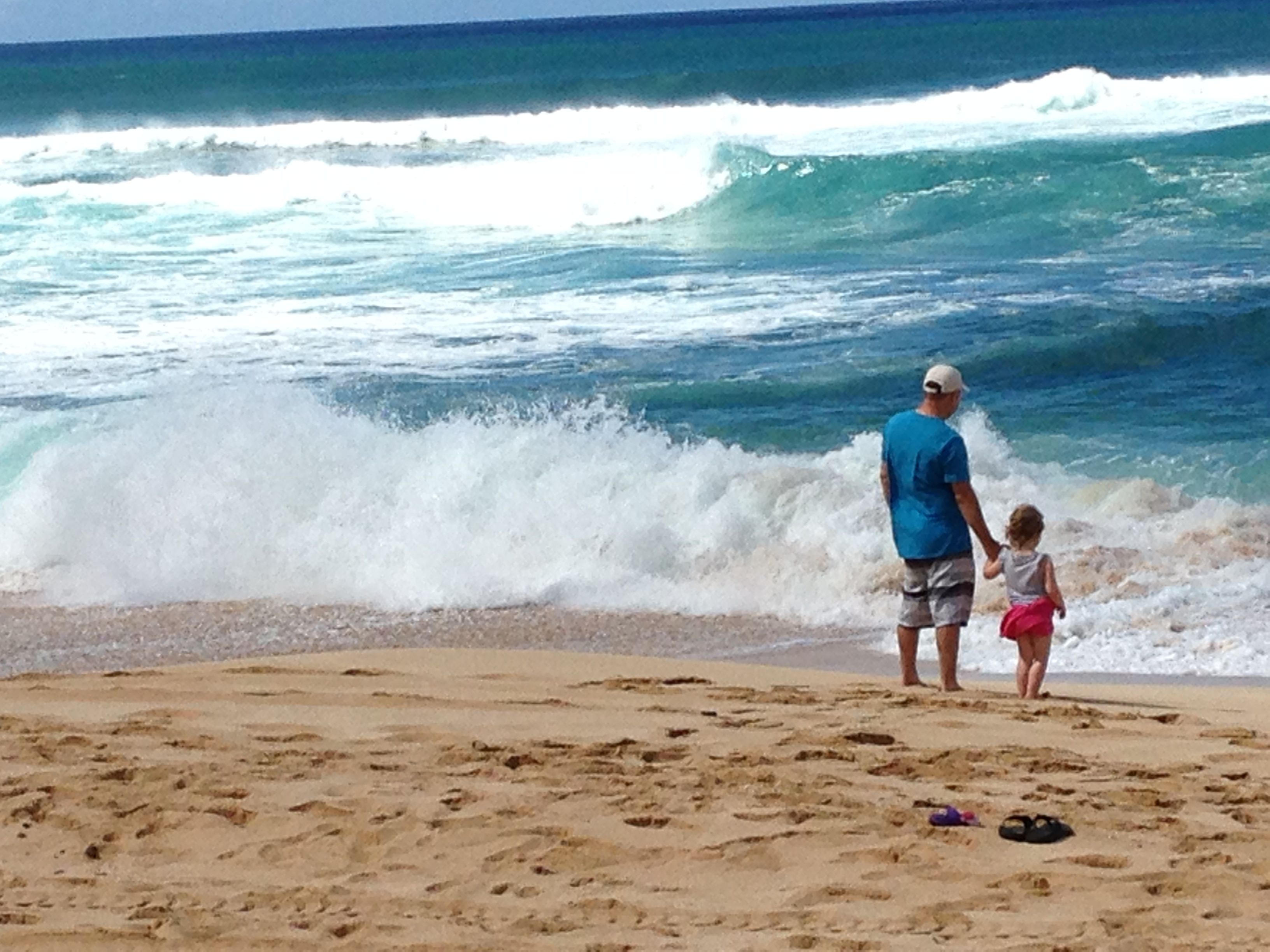- North Shore: 3-hour roundtrip drive (maybe that wasn’t the highlight) to see the “big waves”, as pictured above. What that picture does NOT capture is me 50 feet away taking pictures of the “DANGEROUS SHOREBREAK: When in doubt, don’t go out” sign that the rest of the family completely ignored. I held my breath and videoed the event, so that when the daring Coast Guard rescue of our daughter happened, my husband could watch and apologize later.