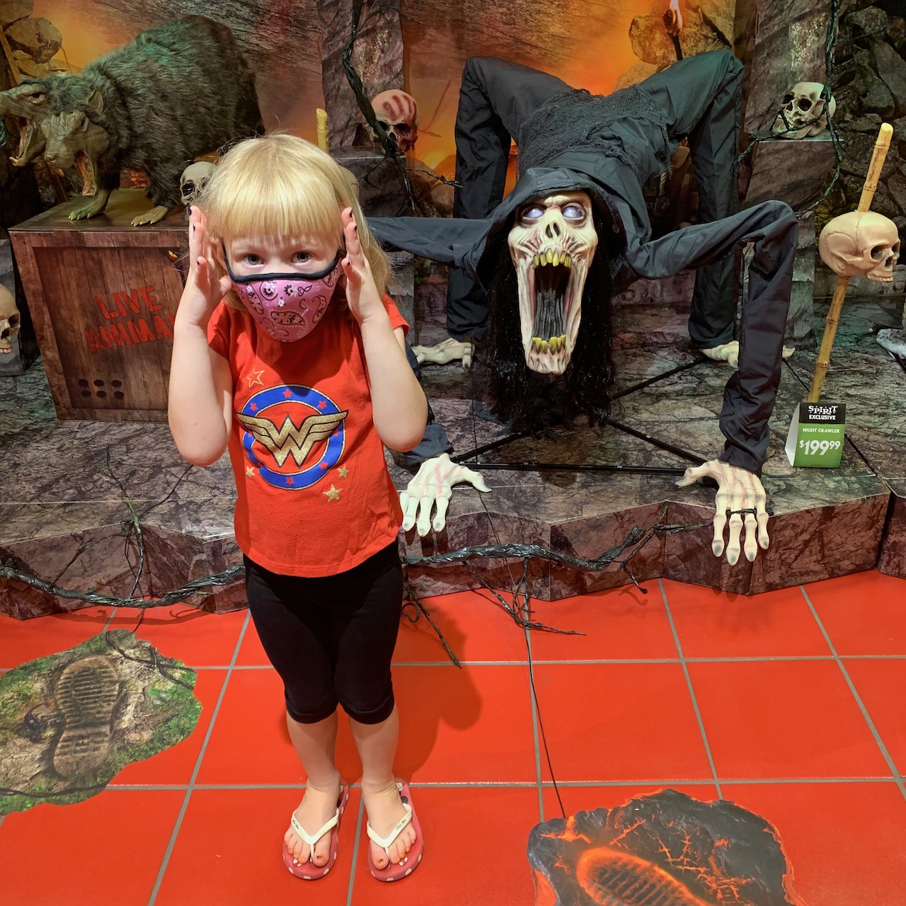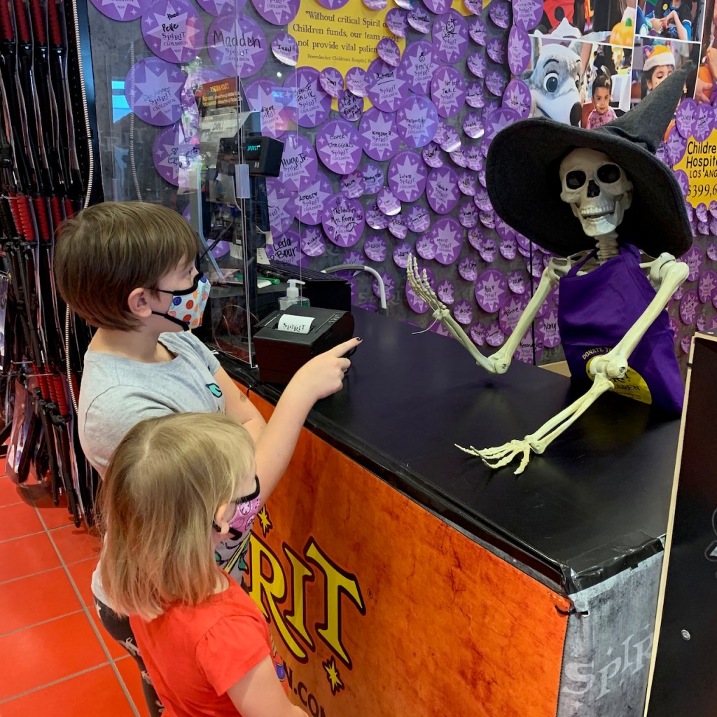 Equally fun? The Halloween shop, where apparently neither of our small children are afraid of anything…