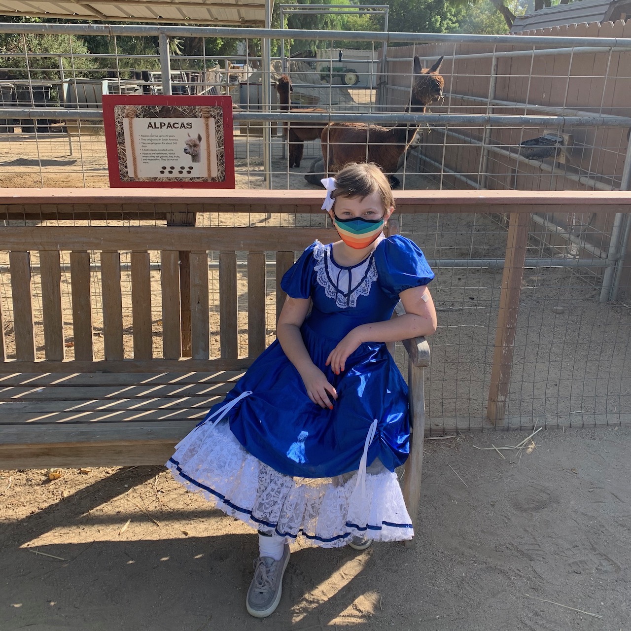 This year, the pumpkin patch couldn’t have its normal, extensive fun. Usually they have face painting, temporary tattoos, corn maze, tiny tractor rides, pig races, petting zoos and pony rides (and more). This year, they had pumpkins, a wagon ride (which we did not take) and animals you could look at through a fence. That explains the llama behind Zoe.