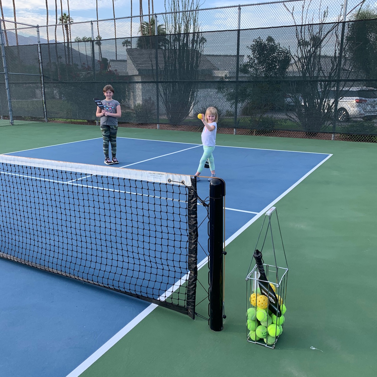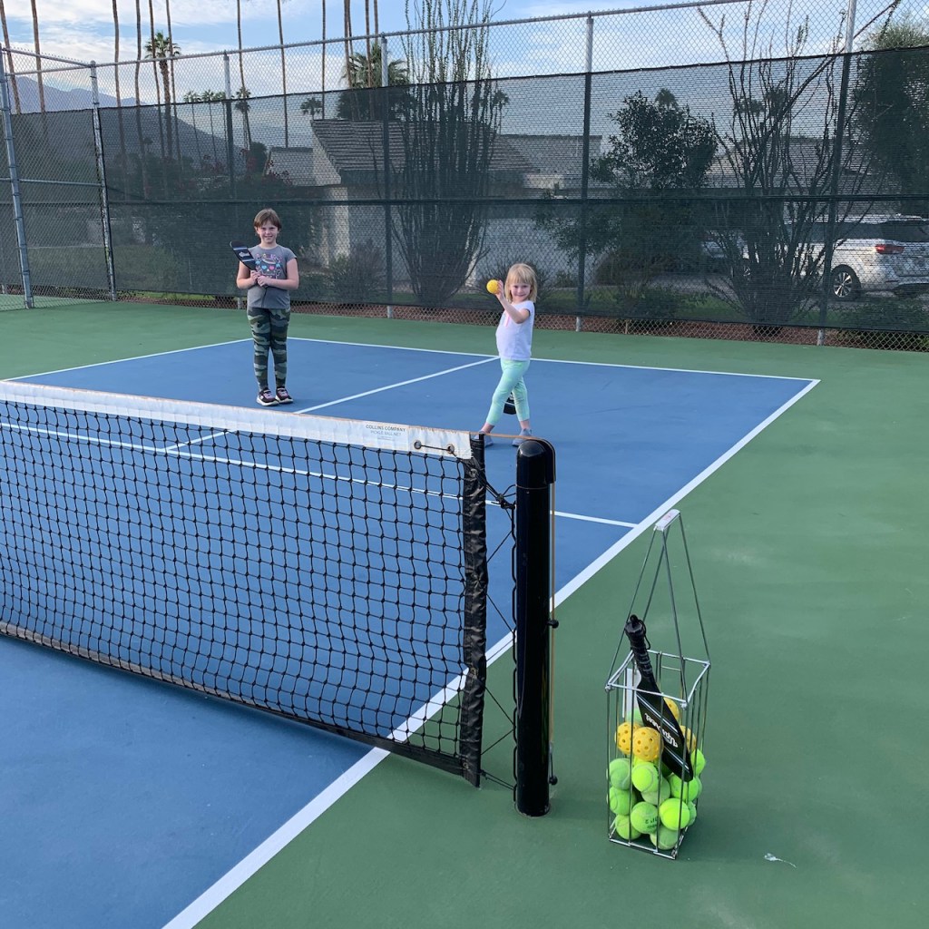 I appreciate how serious Ella looks posing with that cactus! (And also: I think the hardest thing about pickleball is keeping score!)