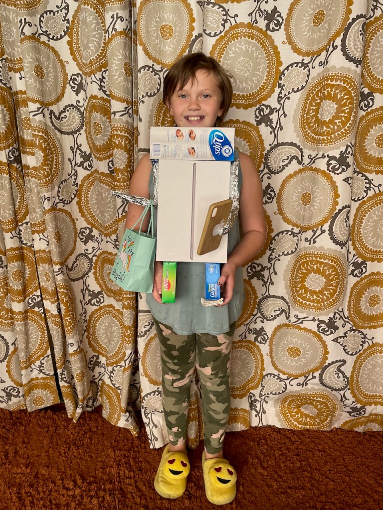- In Zoe’s left hand you can see the extra paper she added when the boxes weren’t the same height to allow her robot to stand. Clever.