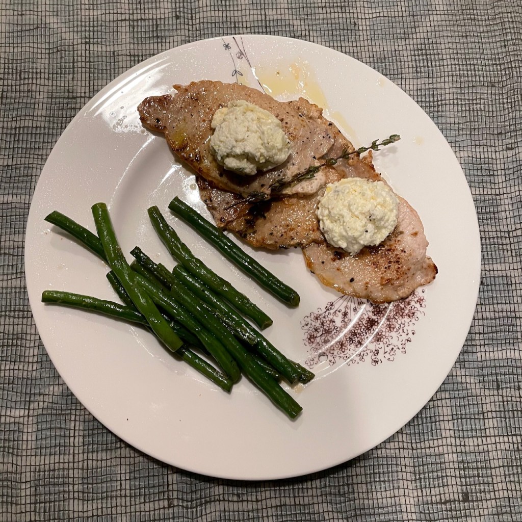 For the first recipe we actually substituted macadamia nuts for hazelnuts. Yum. For the second, that’s a thinly cut pork chop with goat cheese butter, a sprig of thyme, and green beans cooked in the skillet with chicken broth. I’d say I’m living the life. Better yet, I’ve lost 5.2 pounds so far and have much more energy than before. #winning