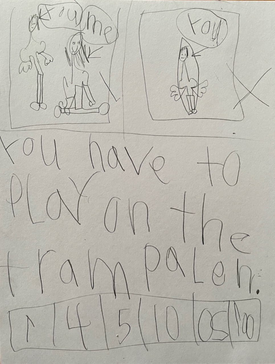 What would help would be adding in consistent exercise, which we have not yet done. Though our girls have been nuts about jumping on the trampoline lately. So much so that Ella wrote this to Zoe: