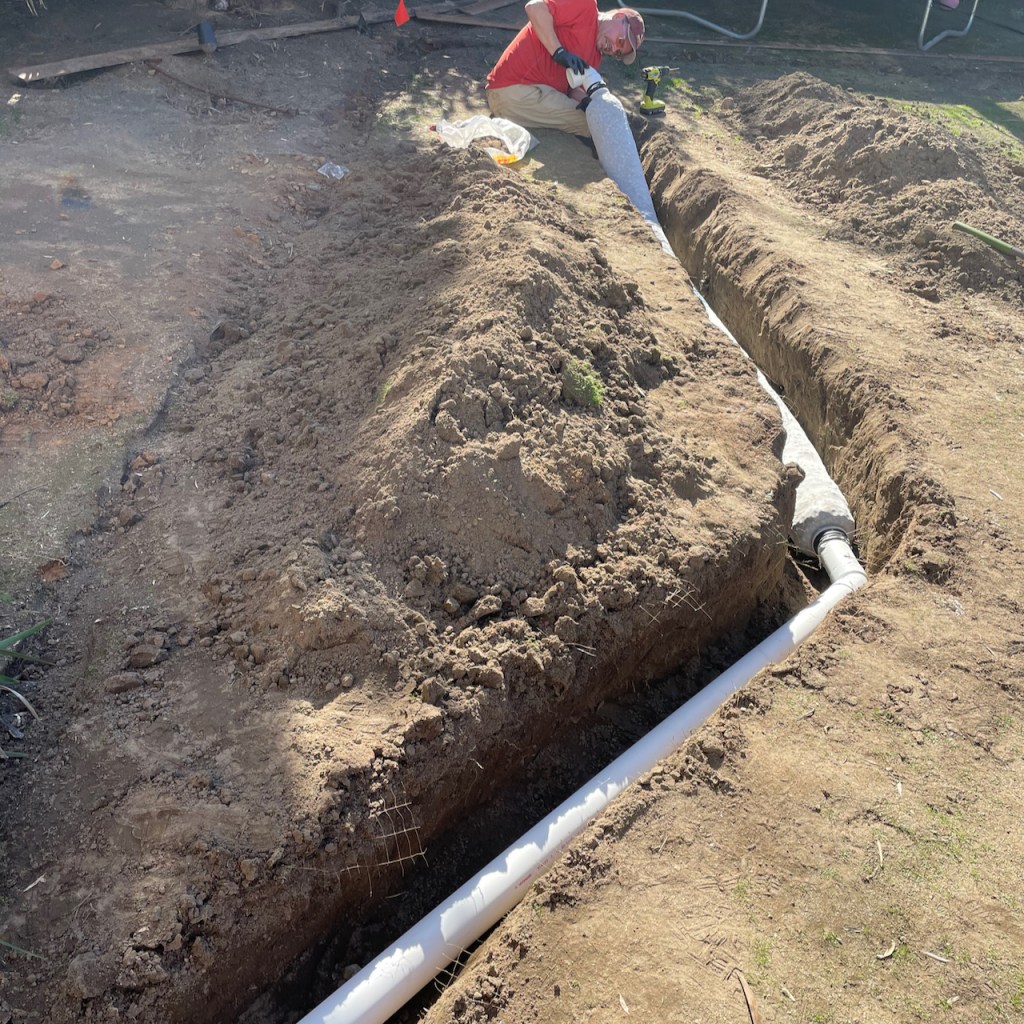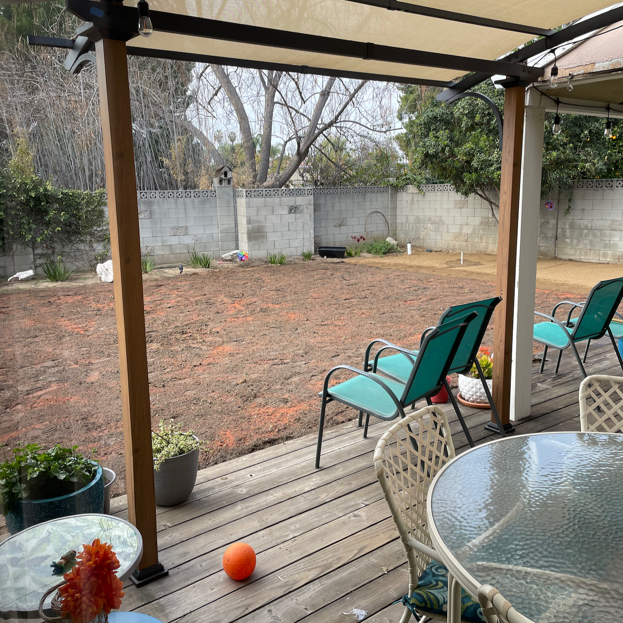 We spent yet another weekend digging in the back yard, installing the drain on the other end of the deck in preparation for the experts to rototill and seed our smaller plot of grass. Which, by the way, is complete. And now, we wait.