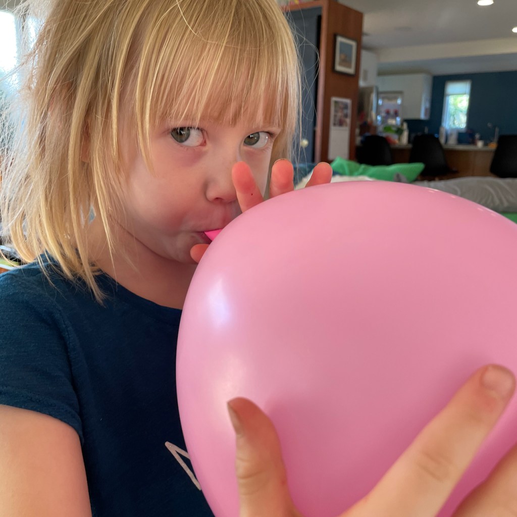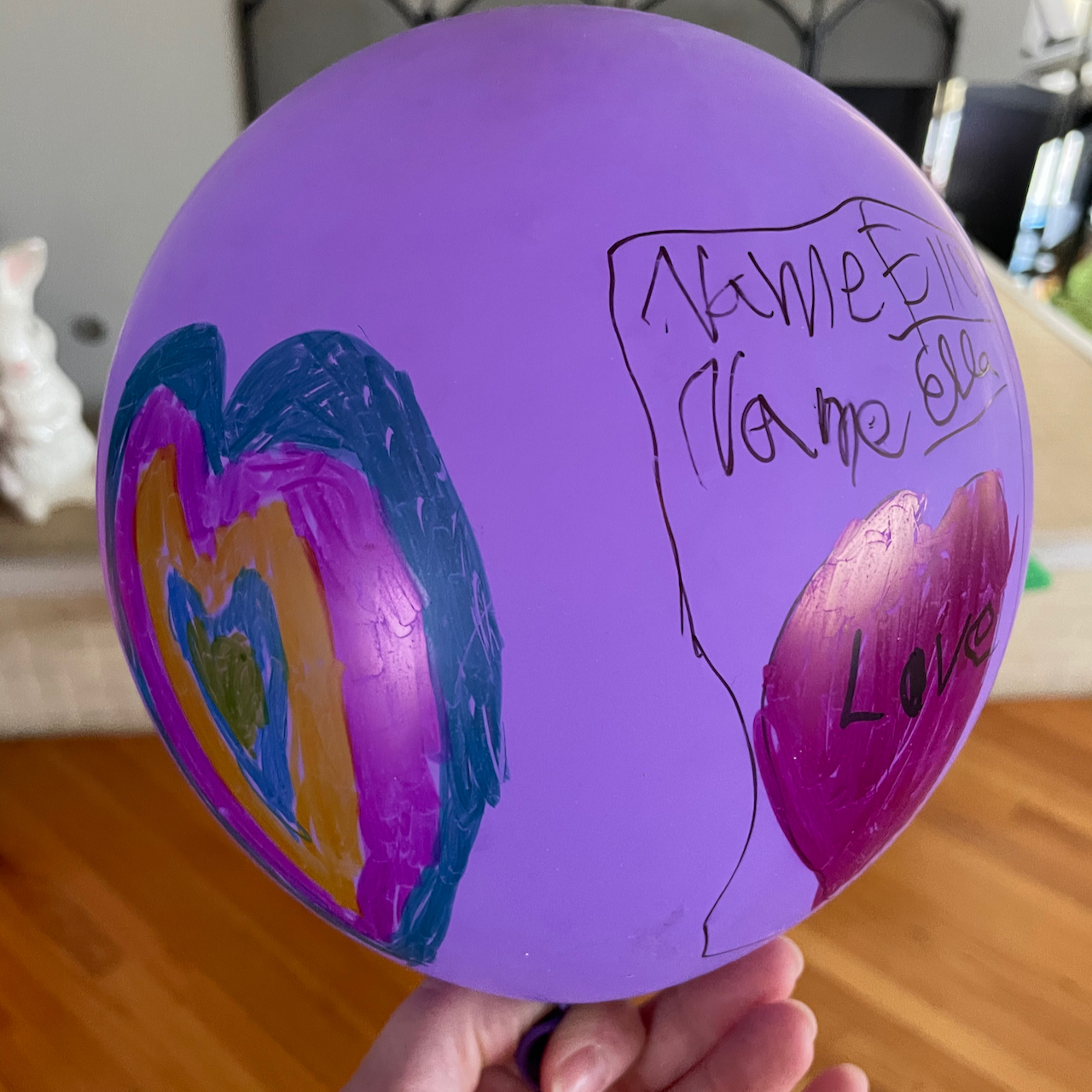 Ahh, the smell of fresh “compost” (horse manure). But while the girls can’t play out back for a while, they’ve had plenty to do. We’ve had several fun weekends in the front of the house with jump ropes; Ella took a short JoJo Siwa cheerleading class (apparently cheerleading is not genetic); and who knew there was so much fun to be had with balloons? One weekend the girls decided they wanted to host a magic show on a Saturday night. Ella had seen a video on a YouTube Kids channel called Junk Drawer Magic about how to get a coin into a balloon. But we had no balloons. Amazon came to the rescue, but it turns out we never saw that magic trick–though we did end up with balloons all over our house… Some looked like these: