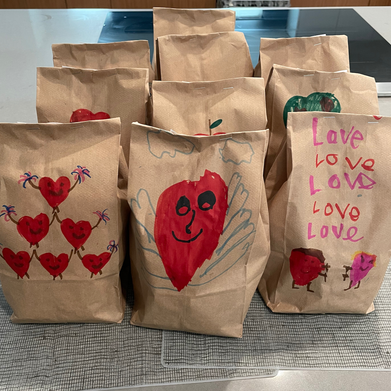 Other fabulous art in the Johnson house includes more weeks of Sunday lunches, a local non-profit program I’m glad we’re continuing to support. In fact, on the last Sunday of January, they distributed almost 7,000 lunches! We’re doing our small part by adding our 10 lunches per week–we’re up to 80 this year so far. Here is some of their original art: