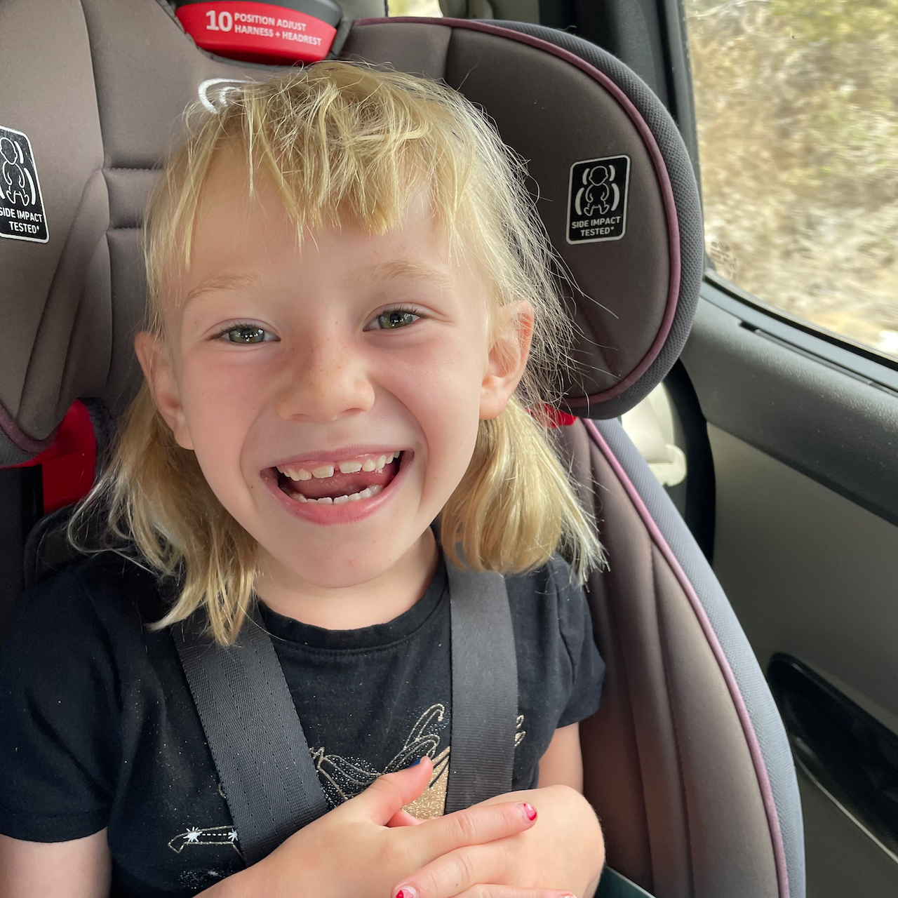Throughout the summer, Zoe continued to morph into what she doesn’t want us to call her: A Pre-Teen. Ella continues her incessantly cute as a button little girl look, losing and growing back her two front teeth and blessing us with mischievous smiles like this: