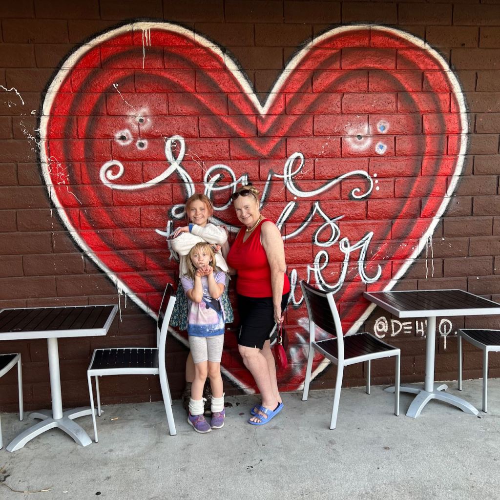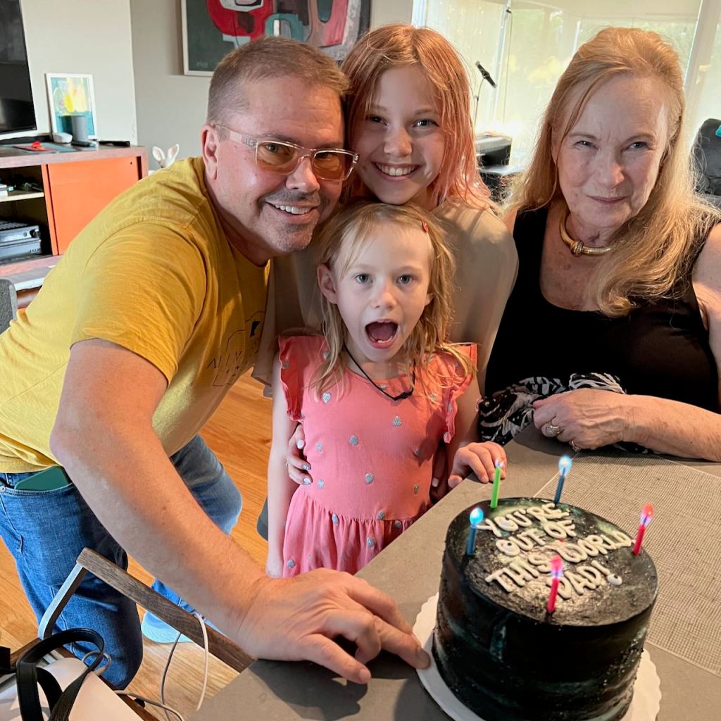 I’m still working on the “improved backyard”, since we love living in LA, but hate experiencing ongoing drought conditions that kill my grass… But let’s head on to June! My sweet mom came out to visit and also to hang out with the girls for a short weekend while we attended one of our favorite friend’s wedding in Cabo (love you, Sharon!). Following are some shots from that fun time, which included Bart’s birthday, and as you’ll see (and agree), he’s Out of This World! For years, I’ve joked with Bart that he’s an alien (those who know him have my back on that), so this year’s cake was particularly exciting to light up.
