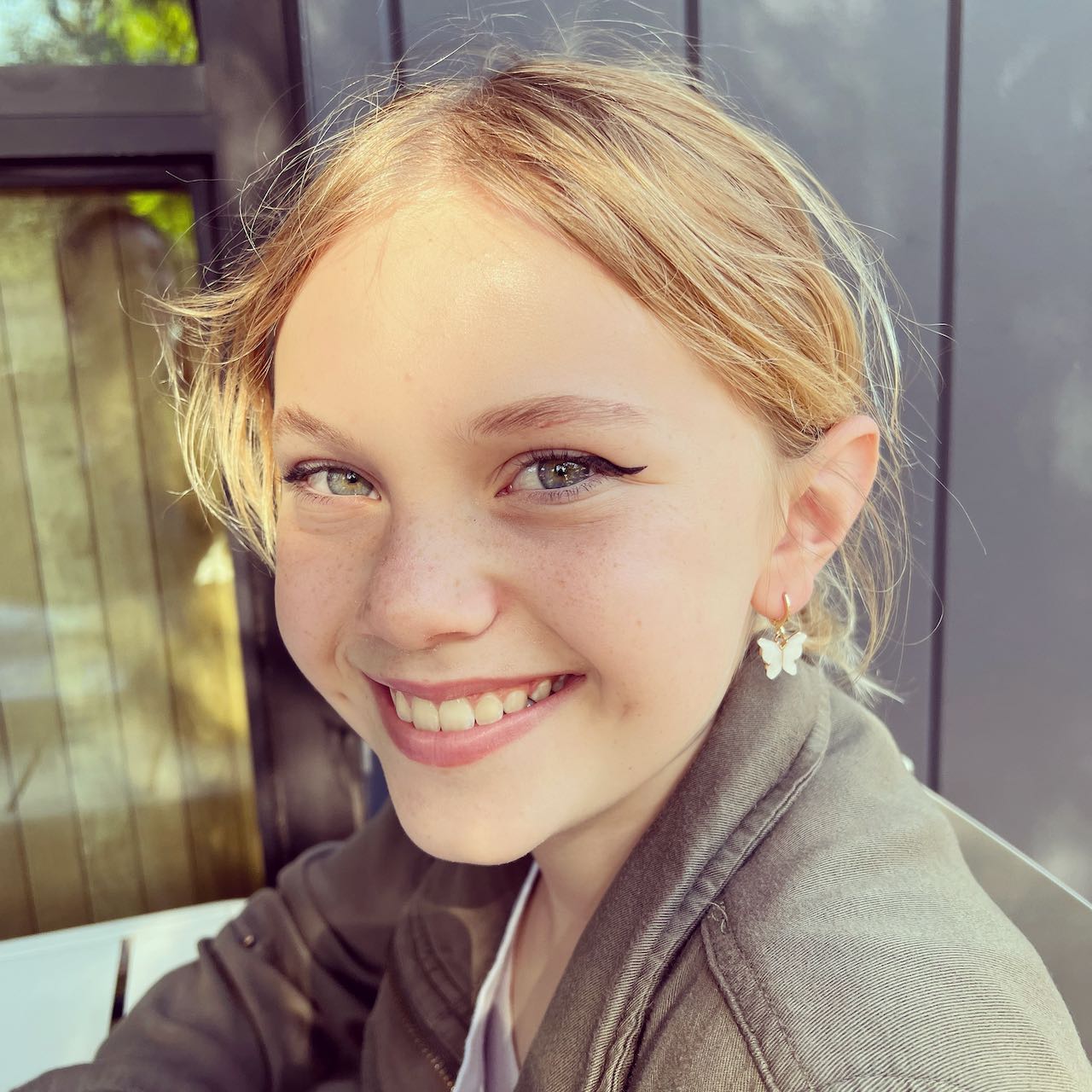 On December 9th, Zoe wore that cute dress to her very first dance ever, with a cute mesh shirt underneath to meet the school’s dress code. She allowed me to walk her to the gate (*gasp*), where I got to see several other girls who were NOT matching that same dress code, with spaghetti straps, bare shoulders and OMG BUTTS HANGING OUT. As the hip mother that I am, I instantly said, “Hey, do you want to take off that mesh shirt?!” To which my incredible daughter said, “No, Mom. I’m good.” She also told us later about helping the teeny, tiny butt-hanging-out girls tie their shoes, because they couldn’t bend over without literally showing their butts… [insert giggles from MY mother, who regularly saw my butt hanging out in college]