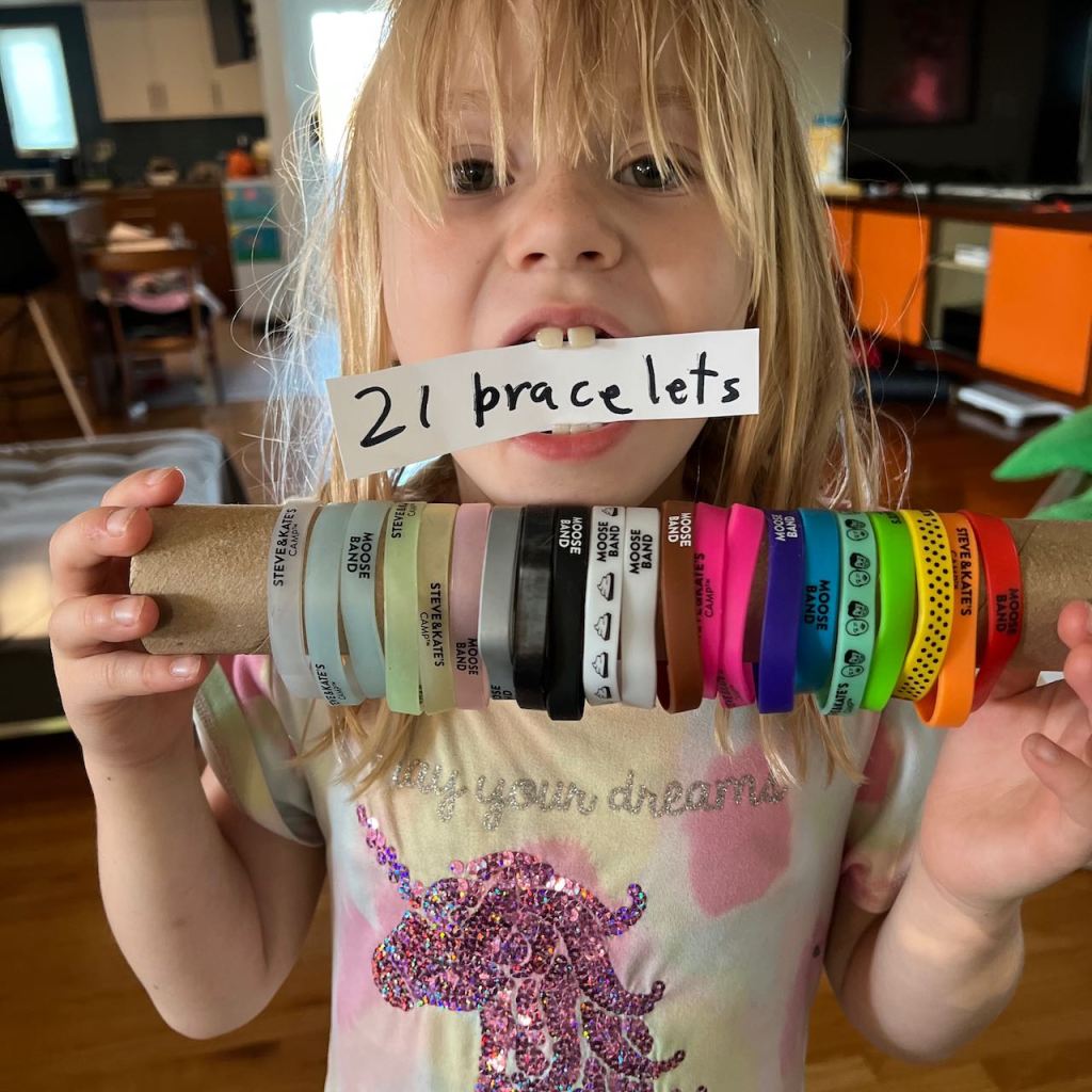 The girls also got to return to a somewhat normal Summer Camp this year, one they haven’t attended before called Steve & Kate’s, which offers lots of stations for creativity. They have a media lab, a sewing station, a bakery where they learn how to bake and a “makery” to encourage all kinds of arts and crafts. For helping out around the camp, they earn bracelets, and this summer Ella collected a bunch. Though some of these she traded and a few she found (don’t get me started), she ended up with…