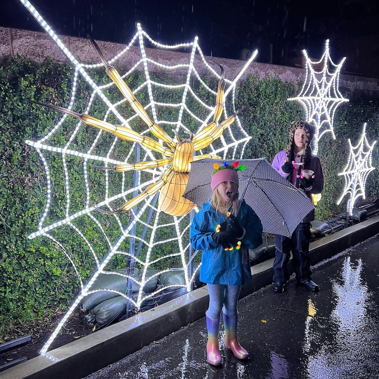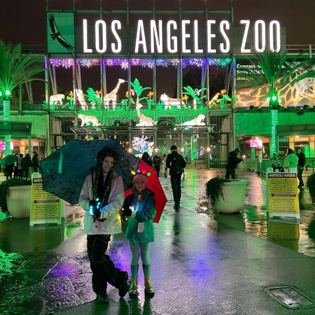 And to wrap up the Christmas season, we enjoyed two must-do outdoor Holiday events: Holiday Road in Calabasas and LA Zoo Lights, which we like to go to every year. There was face painting, music and lots of photo opportunities at Holiday Road, a kid-filled walking “road” with various light and sound shows. And for the Zoo, we got [gulp] RAIN. The kids loved that one, as they splashed in puddles and got to use actual UMBRELLAS. How festive. No, I also can’t believe we own working umbrellas.