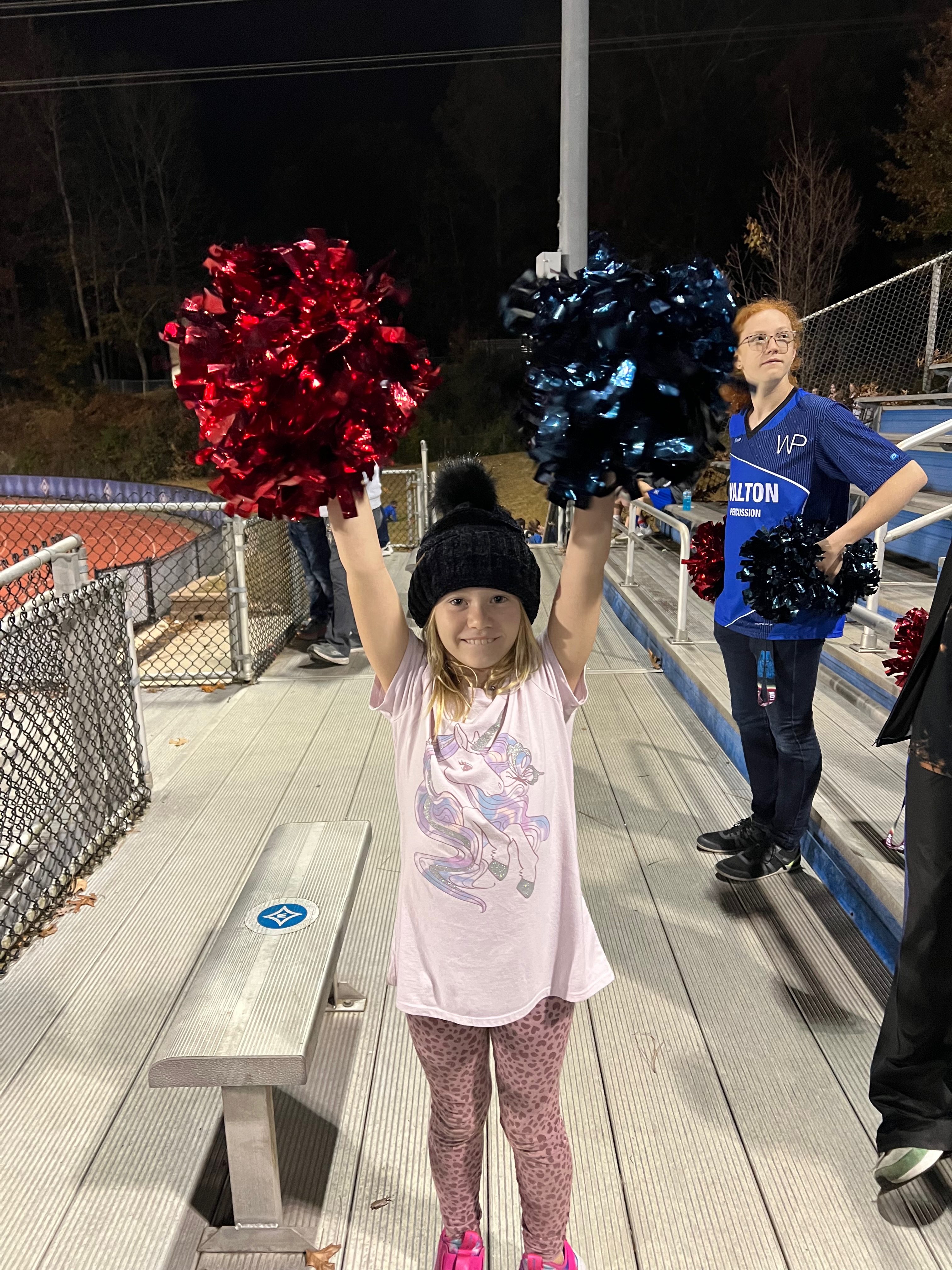 And obviously, the image at the top of this post is of Ella with some borrowed pom-poms and Spencer, too, from the same night. Party people. Very little seems to have changed since I was in high school, other than the cost of refreshments.