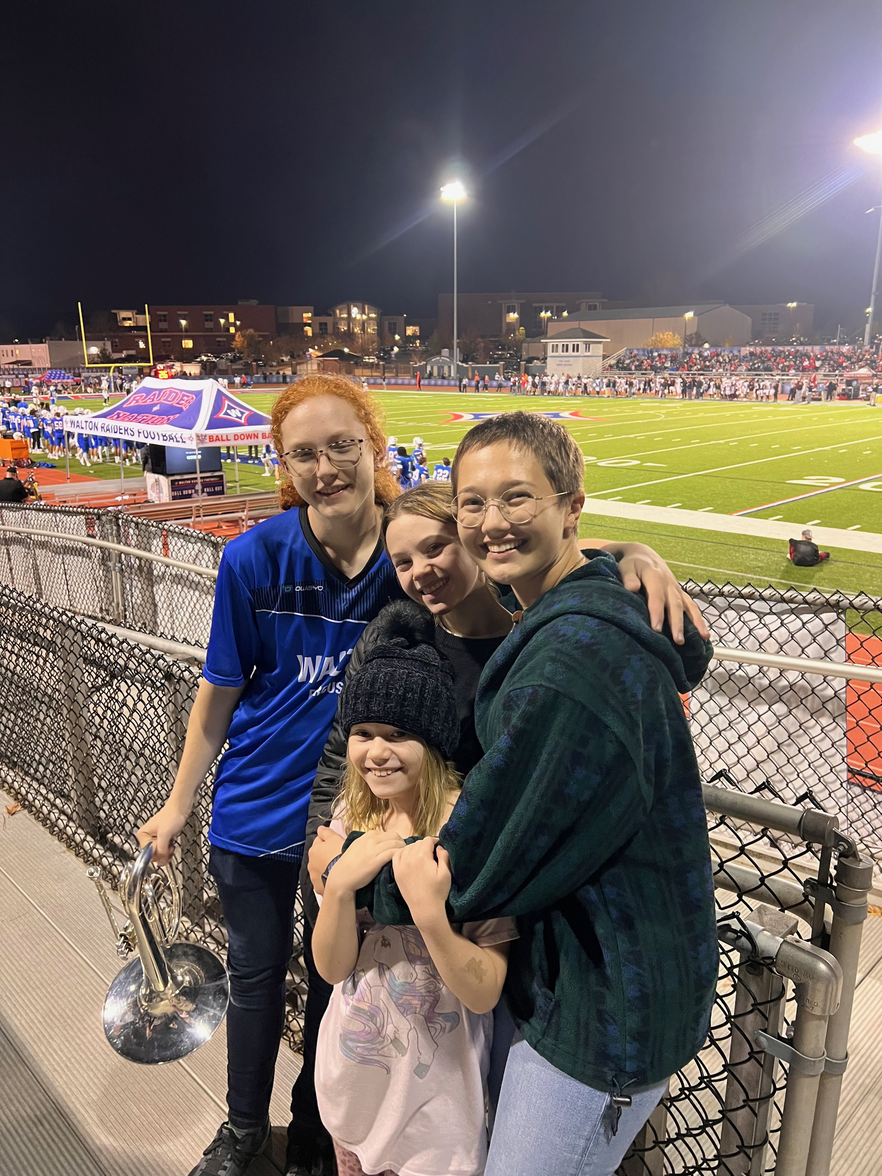 After the movie we went to a real-life high school football game – Friday Night Lights, folks! Both cousins (Sophie and Spencer) have attended Walton High School, a really amazing school where each have had illustrious roles on their award-winning marching band. Spencer plays marimba (and if you don’t know what that is, you should check it out). Here’s some cousin love by the field: