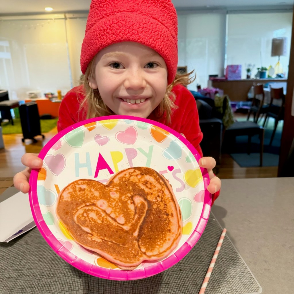 OK, OK, OK. So my last post ended with New Year’s Eve, and this one’s starting up at the end of March. I don’t want you to feel TOO thrown off, so here you go: Valentine’s Day happened, in true Johnson fashion! Pink pancakes, pink and red outfits and accessories, and lots of love: