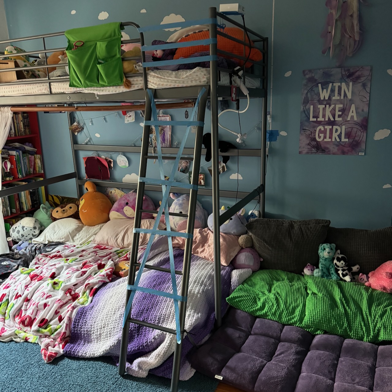 | Game Room: Lounge with video games (squishmallows, blankets, pillows) |