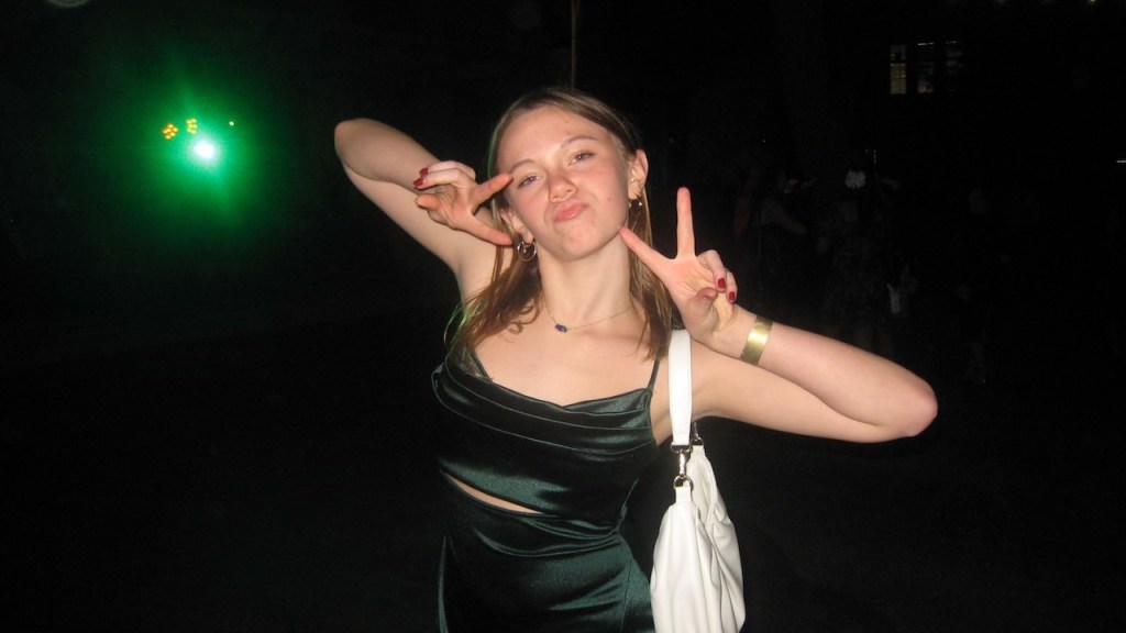 And now it’s time to see that pretty girl in that pretty green dress you saw above at her 8th grade dance, now transformed as she evolves into a super cool high school kid.