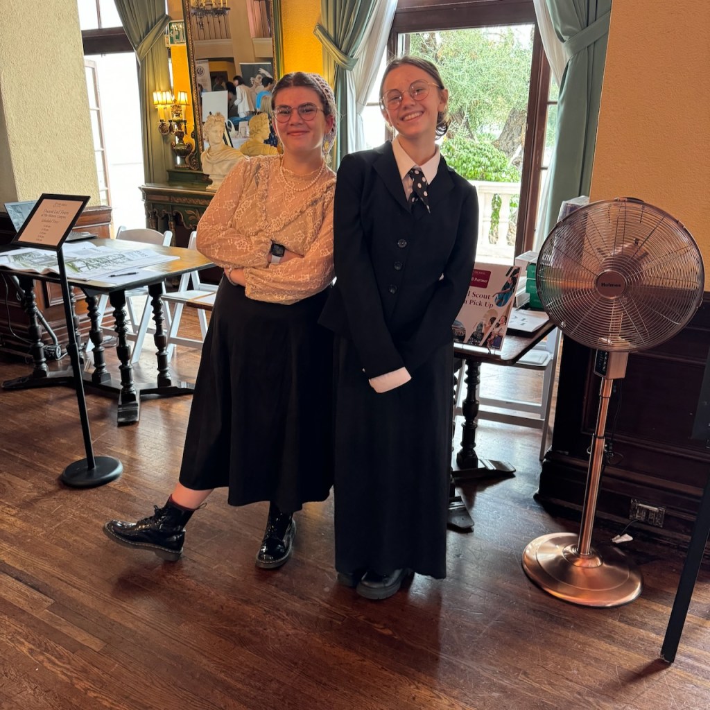 Now let’s keep moving forward to April, which was chock full of fun. Up first, Zoe earned her Silver Award from Girl Scouts for a project she did with two friends in her troop. They scripted an entire tour of the Ebell of Los Angeles, a women’s club that’s been around since 1894, including a “Living History” where the girls dressed up as famous characters from the Ebell’s history and were installed in various rooms of the venue, sharing historical facts about the women the represented and the rooms they were in–the girls even crafted their own costumes with guidance from the Ebell. Over 200 Girl Scouts attended!